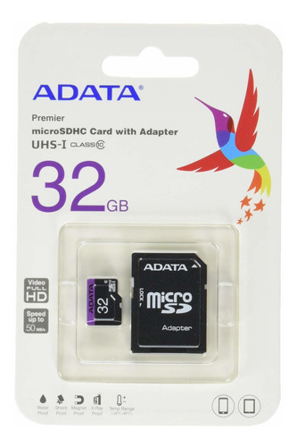 Diseñada para durar, proteger datos y ampliar el almacenamiento de dispositivos, la tarjeta de memoria Adata AUSDH32GUICL10-RA1 Premier te permitirá guardar archivos de forma simple, segura y efectiva. Optimizá tu espacio y ganá tiempo Cuenta con velocidad clase 10 que permite transferir datos de forma rápida y obtener un gran ahorro de tiempo. Guardá tus videos con la máxima resolución Gracias a su tecnología avanzada, vas a poder registrar videos en Full HD. Disfrutá de cada momento de filmación, sin preocuparte por su calidad de almacenaje.